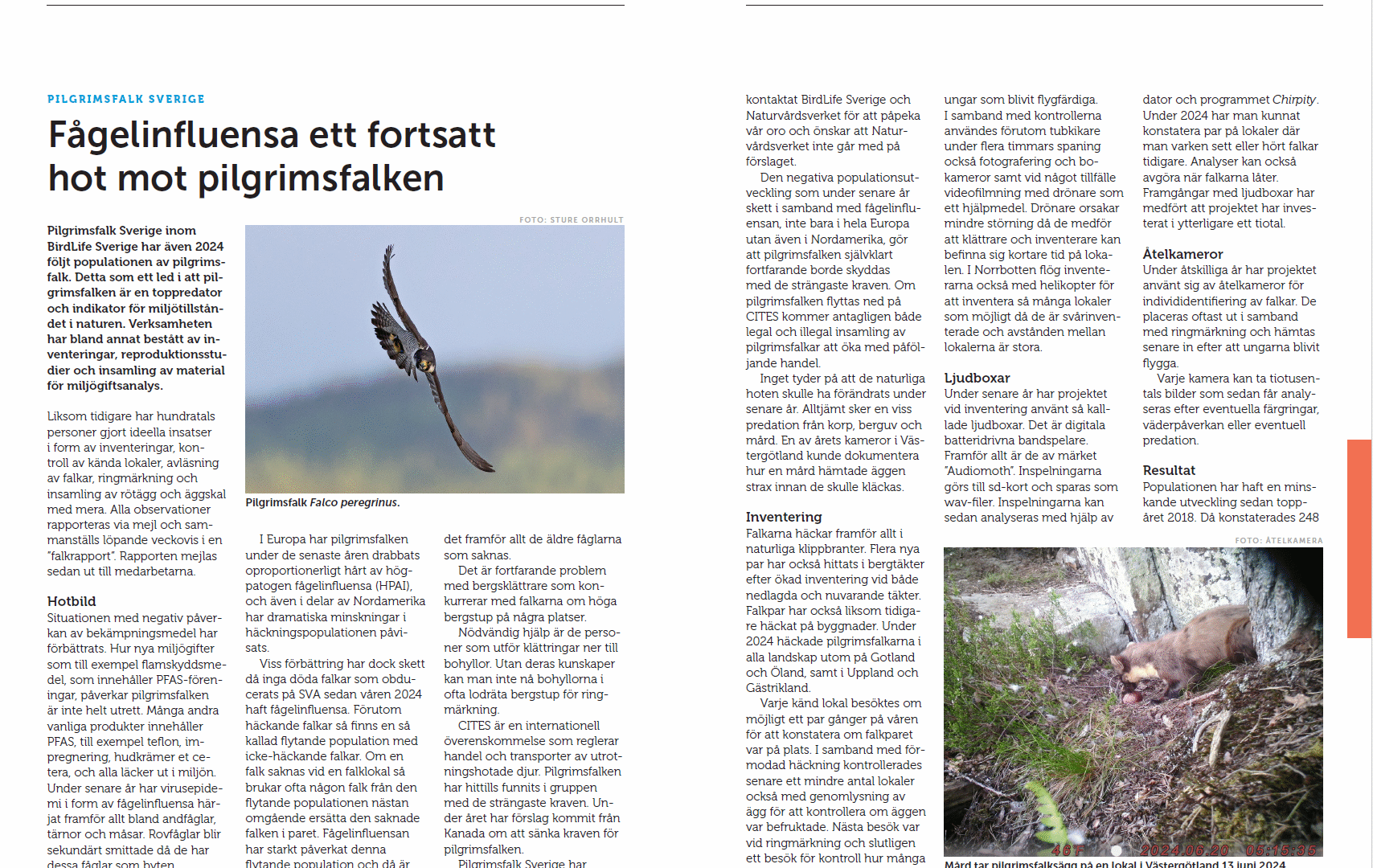 PDF till höger innehåller sidor från Fågelåret 2024 om Pilgrimsfalken.